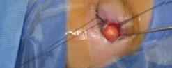 | Pre-op : dermoid cyst on left upper lid | Intra-op : Removal of dermoid cyst |