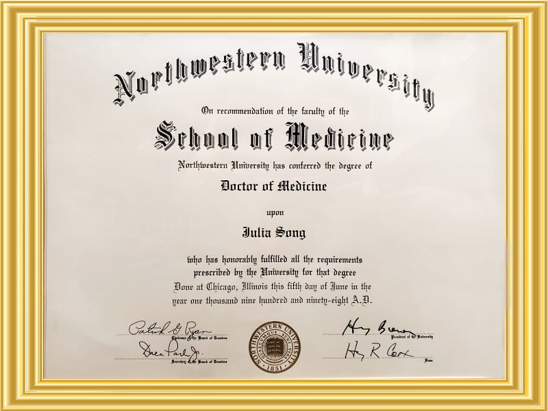 Dr. Song received her undergraduate degree from the Massachusetts Institute of Technology, with a major in Biology and minors in Chemistry and Music. She received her medical degree from Northwestern University in Chicago, IL.